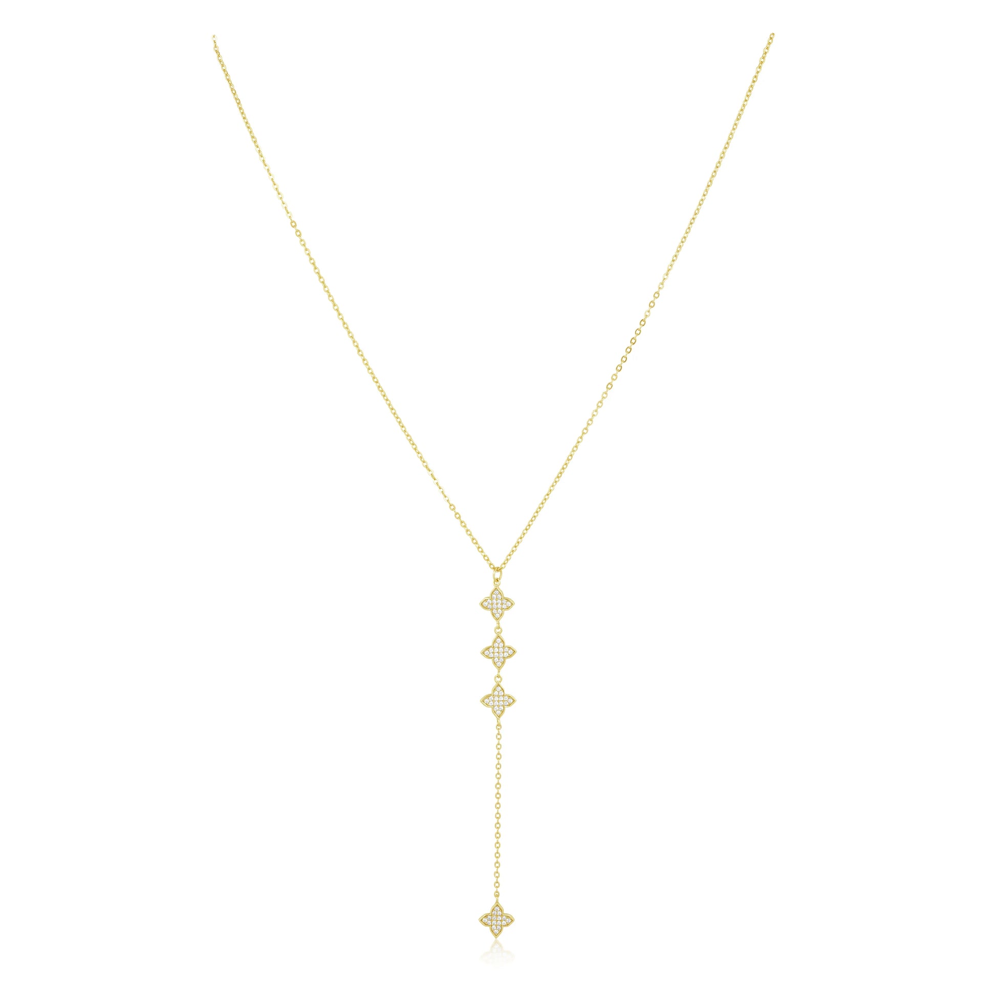Experience the sweet sophistication of our Lori CZ Lariat necklace, adorned with sparkling pave stones. Perfect for adding a touch of elegance to any outfit.